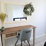 Aside from modern amenities like high-speed internet, the interior also features ironing facilities for a comfortable stay. The apartment is also furnished with a work desk. A bathroom has a tub and a separate toilet, as well as a hair dryer and bath sheets.